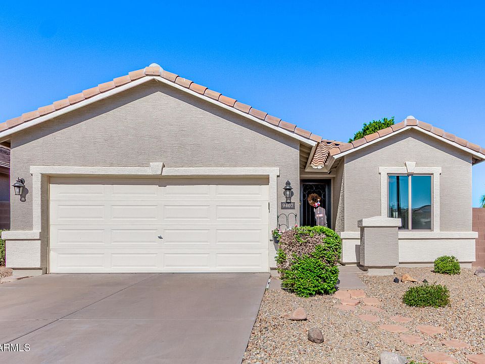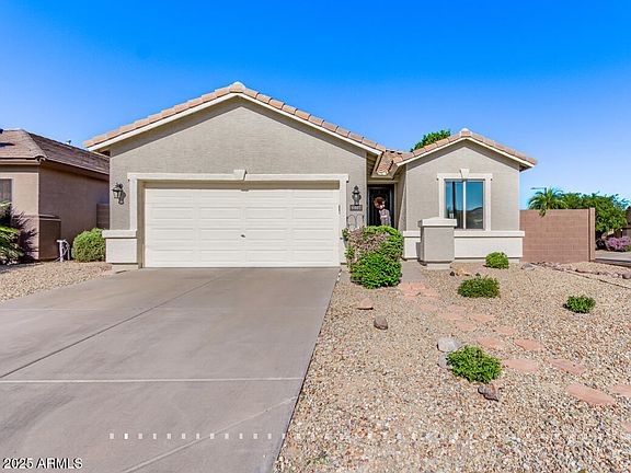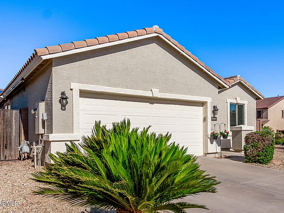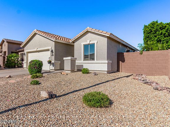 Just 3 miles from the vibrant Prasada(Costco, Target, Sprouts and lots of other restaurants and stores)and the breathtaking White Tank Mountains. Its prime location offers easy access to outstanding schools. The inviting interior features tall ceilings, tons of natural light, neutral paint, and tile flooring in common areas. The heart of the home is the desirable great room with built-in surround sound! The open-concept kitchen boasts SS appliances, recessed lighting, a pantry, staggered cabinetry w/crown molding, and an island w/breakfast bar, GAS stove. Double doors lead to a serene primary suite with a spa-like ensuite: dual sinks, a jetted soaking tub, a glass-enclosed shower, and a generous walk-in closet. PLUS! 4th bedroom is an ideal guest suite with a bathroom in the bedroom for ideal privacy. Recent upgrades include A/C replaced in 2022, updated exterior paint in 2023, new interior paint in 2025, and new carpet in all the bedrooms in 2025. Enjoy peaceful moments in the large backyard! It features a covered patio, extended pavers, a grassy area, artificial turf, string lights, and a mature tree for refreshing shade. What's not to like? This gem won't disappoint!