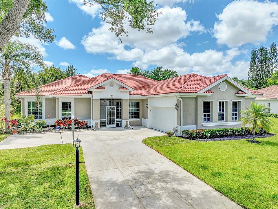Beautiful home situated on a serene canal front estate lot. Expansive 12-foot ceilings and abundance of windows, highlights the stunning backyard space. three bedrooms two full bathrooms, an office or den, and additional dining area. You will appreciate the abundance of natural light illuminating the entire home. Split floor plan featuring a spacious primary bedroom with two walk-in closets and a private bath for added privacy. Over $70K in upgrades include Italian porcelain tile throughout, new light fixtures, fingerprint-resistant stainless-steel appliances, two new air conditioning units installed in 2022, electric shades, a new garage door and gutters, and a pool converted to saltwater. Roof 2014. Owners are licensed Florida realtors. Furnishings are negotiable.