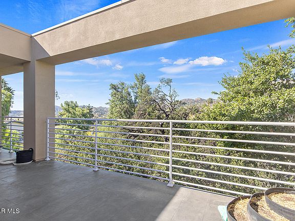 This retreat boasts stunning views and is nestled in the foothills of a tranquil community within Ventura County's Chatsworth area. Built in 2017, this newer construction offers a spacious tri-level open floor plan. On the entry level, you'll find direct garage access and an expansive balcony with picturesque views. Moving down to the next level, you'll discover the common area, complete with a gourmet kitchen featuring quartz counters and a custom tile backsplash. There's also a convenient powder room, dining room, living room, and another balcony perfect for BBQs and outdoor dining.