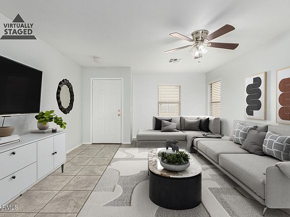 Welcome home to this beautifully upgraded 3-bedroom, 2-bath single-level home just minutes from State Farm Stadium, Westgate Entertainment District, and major freeways! This 1,358 sq ft gem features an open-concept layout with modern finishes, neutral tones, and tile flooring throughout. The kitchen offers sleek granite countertops, stainless steel appliances, and ample storage. The spacious primary suite includes a walk-in closet and a beautifully updated bathroom. Enjoy a low-maintenance backyard with a covered patio ,perfect for relaxing or entertaining. TVs convey with the home! Move-in ready and waiting for its next proud owner.
