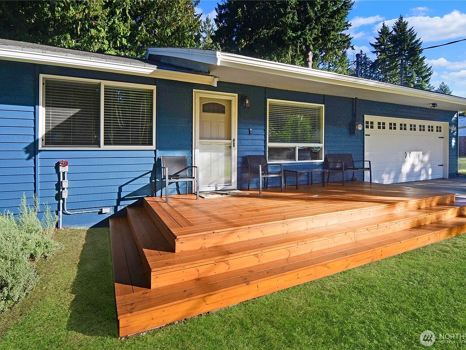 Discover this charming 3BR, 1.5BA rambler near Bonney Lake, thoughtfully updated for modern living. Nestled on a double lot, this home features a spacious family room with skylights and a new pellet stove, perfect for cozy gatherings. Recent additions include a half bath and family room (2009). Enjoy peace of mind with a newer roof. Step outside to a new front deck, private back deck with a fire pit, and storage shed. Positioned within the boat permit zone for Bonney Lake, make the most of lake life with ease.