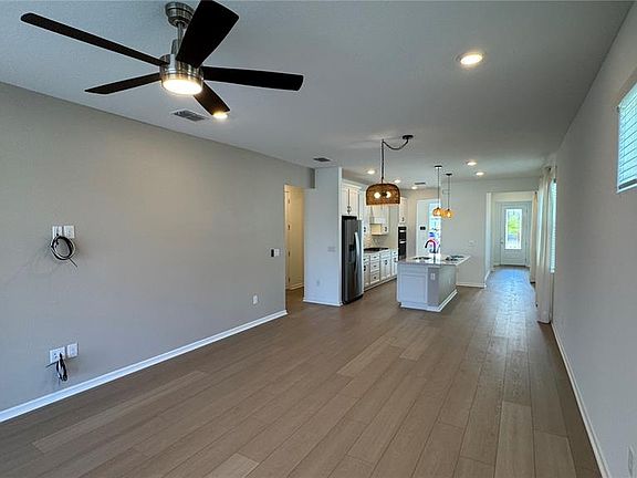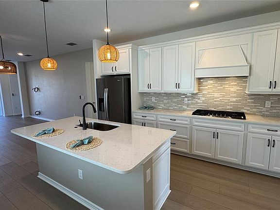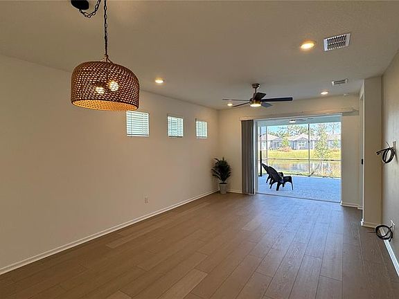 Unfurnished Annual Rental Available Now. Experience the best of active adult living in this brand-new three-bedroom, two-bath home with a two-car garage, located in the highly sought-after Del Webb BayView community in Parrish. Perfectly positioned just 30 minutes from downtown Sarasota, St. Petersburg, and Tampa, BayView is a vibrant 55+ neighborhood centered around signature resort-style amenities. This residence features an open, thoughtfully designed floor plan with upgraded finishes throughout. The designer kitchen serves as the heart of the home, showcasing stylish white cabinetry, quartz countertops, a tiled backsplash, stainless-steel appliances, and a spacious center island makes cooking and entertaining effortless. There are three comfortable bedrooms, including a private owner's suite at the rear with a walk-in closet and a beautifully appointed owner's bath featuring quartz countertops, dual sinks, a generous vanity, and a walk-in tiled shower. Additional features include luxury vinyl plank flooring in the main living areas and flex room, ceramic tile in the bathrooms and laundry room, stain-resistant carpet in the bedrooms, an upgraded electric panel, and impact-resistant windows for peace of mind. Enjoy outdoor living year-round with a pocket sliding glass door leading from the gathering room to a covered lanai and extended screened patio. Del Webb BayView offers an impressive collection of amenities, including a resort-style pool, fitness center, clubhouse, restaurant and bar, pickleball and tennis courts, walking trails, fire pits, social activities, and more.