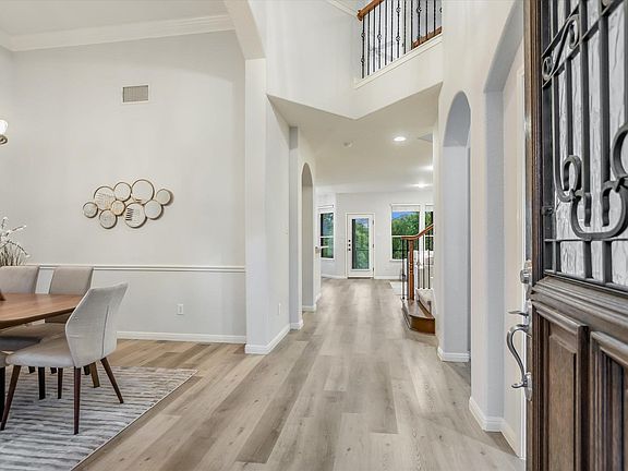 This incredible two-story home in Avery Ranch East has been renovated with luxury vinyl plank flooring, airy paint, rustic modern fixtures, and new tile and cabinet paint in the master and guest bathrooms, and is just a short walk from highly-acclaimed Patsy Sommer Elementary School in Round Rock ISD. With high ceilings and a soaring entry foyer, you’ll feel the space this home offers the moment you walk inside. There are multiple living and dining areas as well as a roomy breakfast bar that is perfect for grabbing a casual bite while enjoying the open floor plan. Take in the beautiful elevated green belt view from the main living space and kitchen, or from the oversized covered back patio. The private backyard stays fresh and green even in the hottest months thanks to the home’s automatic sprinkler system. The huge master bedroom is a perfect sanctuary after a long day with a garden tub for relaxing and a separate shower, which is ideal for those busy mornings. The walk-in closet and dual master bath vanity will make getting ready a breeze. With all this home has to offer, it won’t last long!