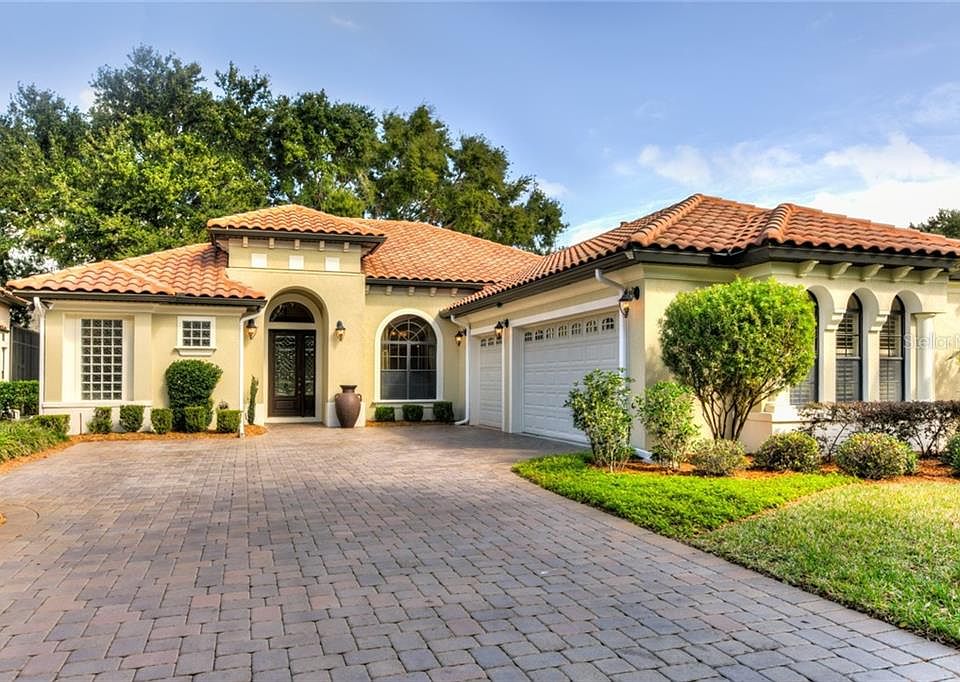 (See VR Tour) MISSION INN RESORT- COUNTRY CLUB LIFESTYLE - LAS COLINAS GATED GOLF COMMUNITY. Stunning custom built 3/2/2 1/2 car Spanish Mediterranean tile roof home with professional designer touches, majestic panoramic views of fairway & greenbelt will take your breath away! Features: Open floorplan, Roman columns, 12' tray ceilings with crown molding, surround sound, designer drapes, freshly painted interior, ceramic tile floors throughout, ornate gas fireplace in living room, mahogany leaded glass front door, designer light fixtures, whole house water filtration system & gutters. Patio: Offers spectacular views, screened-in with Roman Columns & pavers. Stunning gourmet kitchen: granite countertops, cream with coffee glazed cabinets, GE Profile series appliances, cabinet covered refrigerator, gas stove, granite island designed as a piece of furniture, breakfast bar spacious enough for 5 bar stools & breakfast nook with large mitered glass window. Master bedroom: two California style walk-in closets & tray ceilings with designer lighting. Master bath: cream with coffee glazed cabinets, granite counter tops, separate double sinks, tiled shower & garden tub. Enjoy the tranquil setting & activities. Mission Inn Resort membership is required. Resort amenities: (2) 18-hole championship award winning golf courses, (3) restaurants, tennis, skeet shooting, full service spa, workout facilities, & marina on Lake Harris. 45 min to Orlando. SPECIAL OFFER: 1/2 off of member initiation fee.
