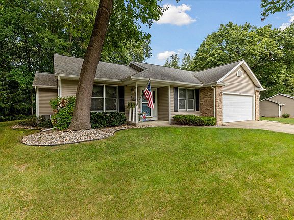 Welcome to Sterling Oaks! This 2 bed, 3 bath condo offers easy living in one of Portage's most sought-after communities. Situated on a corner lot, the home is filled with natural light from skylights in the living room, which also features a gas fireplace. The kitchen includes newer appliances, updated counters, and a breakfast area, while the dining room provides space for entertaining. Enjoy morning coffee or relaxing evenings in the 3-seasons sunroom overlooking wooded views. The primary suite offers wall-to-wall closets, a walk-in shower, double vanity, and convenient access to main-level laundry. A second bedroom and full bath complete the main level. The basement adds a third full bath, additional finished living space, and abundant storage with room to expand. Updates include roof (2016), furnace (2015), A/C (2021, warranty to 2031), water heater (2021), and flooring (2018/2022). Extras include central vac and a 2-car garage. Move-in ready and maintenance-free!