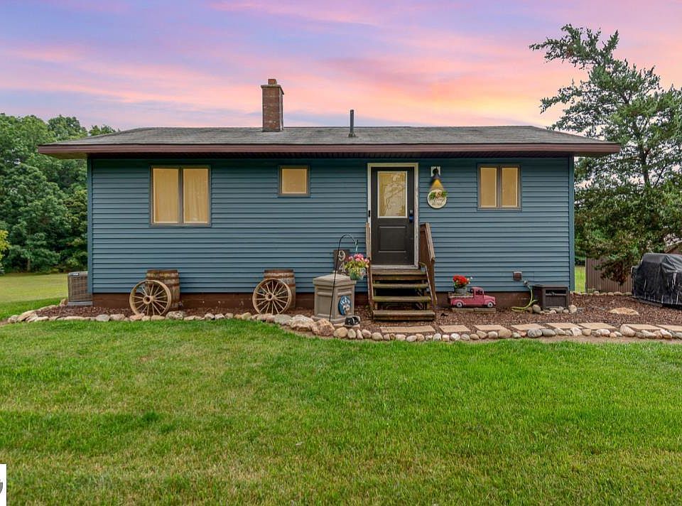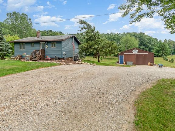 This charming 2 bedroom, 1 bathroom home is located in a private country setting on 3 acres of land. The spacious eat-in kitchen is perfect for hosting family gatherings and dinner parties. The walk-out basement provides additional living space and storage options. Outside, there is a large pole barn that can be used for storing equipment, vehicles, or even turned into a workshop. The possibilities for this property are truly endless - from starting a small farm to building a custom outdoor living space, the choice is yours. Imagine waking up to the peaceful sounds of nature and enjoying the serene views from your own backyard. This property offers the perfect blend of privacy and convenience, with easy access to nearby amenities and attractions. Don't miss out on this wonderful opportunity to own a piece of country paradise with endless potential. Schedule a showing today and start envisioning the possibilities for this beautiful home.