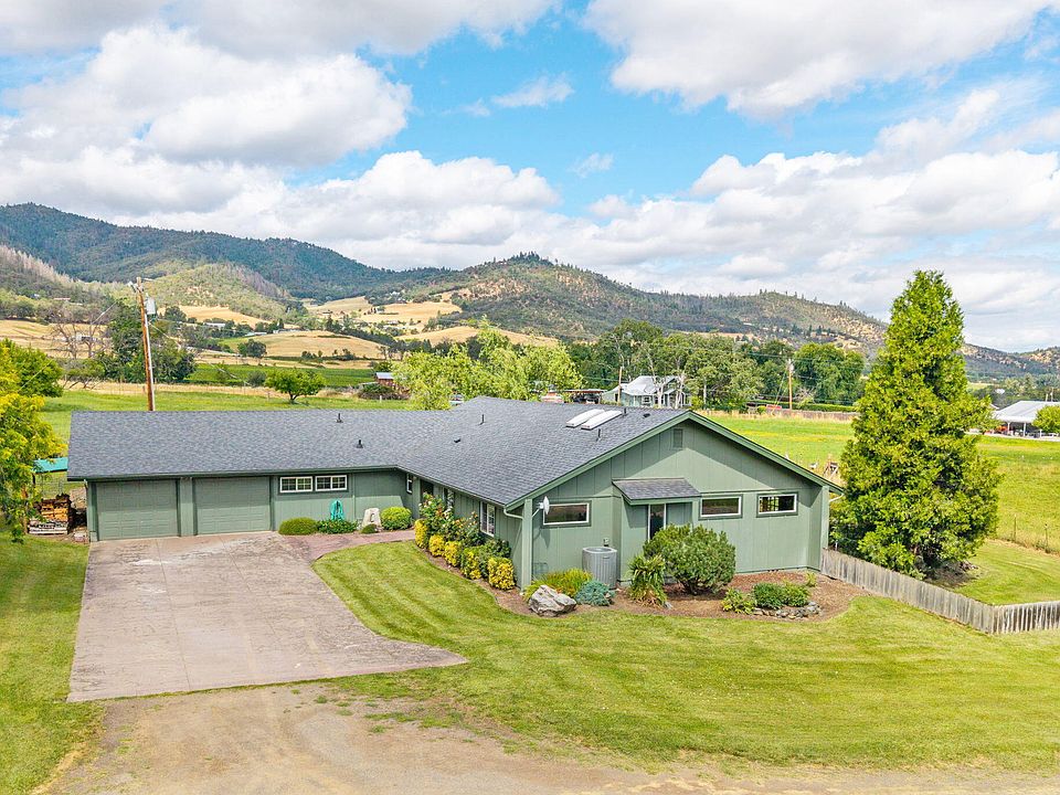 Country living in a lovely single-level home with views, just minutes to downtown Talent and ten minutes to Ashland. Thoughtfully remodeled, the kitchen and bathrooms combine modern comfort with timeless style. This beautifully cared-for home rests on 2.5 level acres with barn, pasture, and Talent Irrigation District water. Offering three bedrooms and three full baths. The open floor plan is filled with natural light. The vaulted living room features a wood-burning fireplace and opens to a large deck overlooking Roxy Ann Peak. The spacious primary suite also opens to the deck and includes a custom-tiled bath and walk-in closet. A bonus space off the garage is ideal for a studio, gym, or office. Additionally, you will love the barn and the level property, which are perfect for horses or cattle. With mature landscaping, garden beds, and an ideal location, this property has it all.