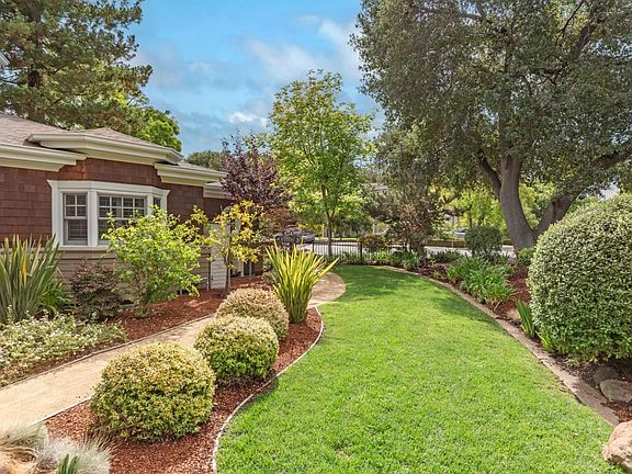 This award-winning residence showcases traditional Cape Cod styling, quality craftsmanship, and impeccable attention to detail around every turn. Custom built and designed to meet the needs of both daily life and large-scale entertaining, this home features 4 bedrooms, 4.5 bathrooms, and 2 offices arranged over three levels. Throughout the home you'll find intricate millwork, gorgeous Australian eucalyptus wood floors, custom light fixtures, and fine stonework. The gourmet kitchen offers an oversized island, Uba Tuba granite, and luxe appliances, and opens directly to the garden-view dining room. The spacious living room has an entire wall of custom cherry wood built-ins, a stately fireplace, and doors to the sun-swept parlor with access to the grounds. Upstairs, the primary suite has a cozy reading nook, a sitting room or nursery, a spa-like bath with a generous walk-in closet, and access to two large balconies. On the lower level you have a spacious family room, a home office, and a bedroom suite ideal for guests. Your serene outdoor retreat stuns with eco-friendly ponds and cascading waterfalls, a fire pit patio, spa, and professionally landscaped gardens. A tranquil escape that feels worlds away, yet just minutes from downtown, top schools, and the heart of Silicon Valley.
