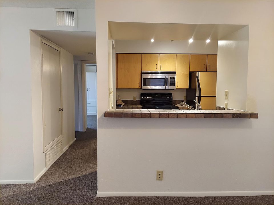Well maintained 2nd floor (top floor) 1 or 2 bed 2bath unit facing hillside. Furnished with tiled bath and shower, in-unit washer/dryer, like new carpet, custom closet, all appliances. Forced air heat & swamp cooler. Heated pool, spa, gym, & walking trails. 5 minutes to downtown, De Vargas Mall, 599 & Hwy 285/84. Walk or drive to LANL park & ride. No pets, no smoking. Rent $1975 w/owner paying up to $50/month for water. Tenant pays all other utilities. Lease from 30 to 90 days. Not a short term rental.