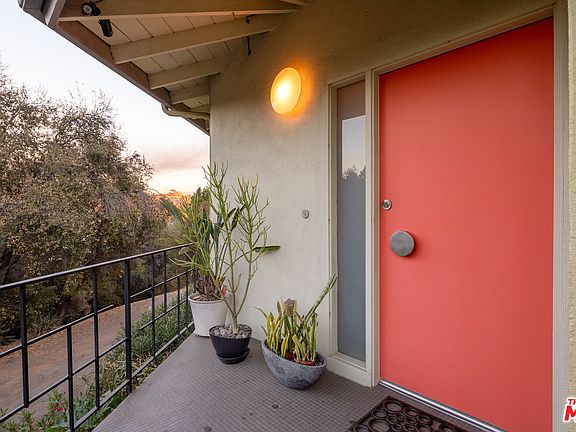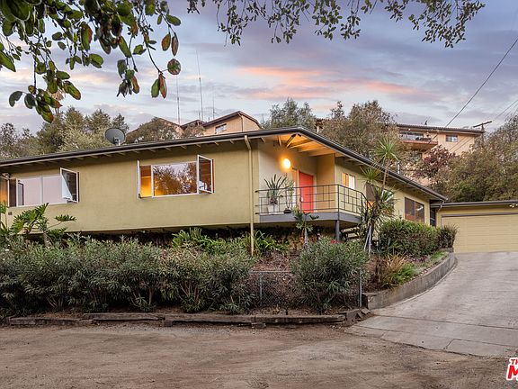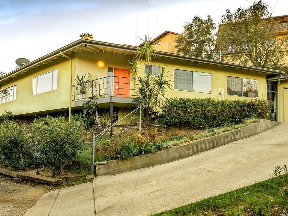 This bright Mid-Century home in Glendale's hottest neighborhood Rossmoyne is the ideal choice for the buyer looking for style, privacy and location. Located at the end of culdesac up a long driveway, overlooking oak trees and the city beyond, this 2 bedroom 1.5 bath home features wood floors, a vaulted ceiling, and a fireplace. Step out to one of the private patios for alfresco dining and entertaining. Updated with copper plumbing, AC, fabulous windows and hardware and including a detached 2 car garage, this is the rare Mid-Century home in the hills of Glendale you've been waiting for. Originally built as 3 bedrooms and currently used as 2 Can easily be used as 3 again.