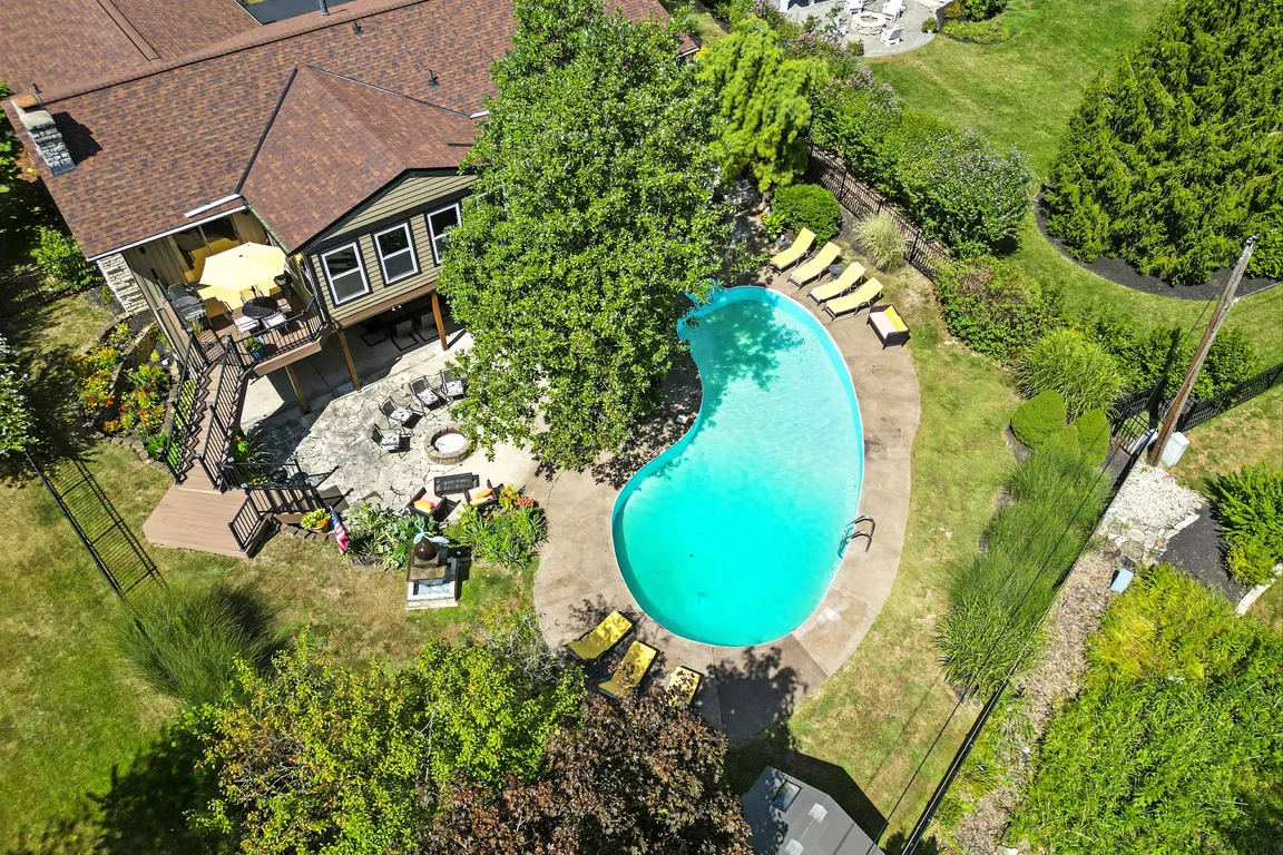 Kidney-shaped poolUtility sinkVaulted cedar ceilingLandscaped lotStunning sunsetsGranite l-shaped barSweeping golf course views