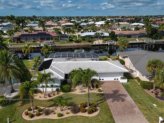 PARADISE FOUND IN PUNTA GORDA ISLES – WATERFRONT, LARGE POOL, DOCK, LIFT, UPDATES GALORE & Motivated Sellers! Step into your slice of Southwest Florida paradise—an impeccably updated, move-in-ready waterfront pool home with 89 feet of canal frontage, quick access to Charlotte Harbor (approx. 20 minutes by boat), and enough upgrades to make your inspector smile. Whether you want a full-time oasis, a seasonal retreat, or a high-performing Airbnb investment, this home delivers. Inside, the bright open floor plan flows effortlessly from the spacious living and dining areas to a custom 2021 kitchen featuring quartz countertops, soft-close cabinetry, stainless-steel appliances, touch-free faucet, large pantry, and a convenient pass-through to the dining room. The all-seasons Florida Room adds nearly 250 sq ft of under-air living space, wrapped in impact windows, remote-control electric shades, and waterfront views that reset your blood pressure instantly. Step outside and the real magic happens. The resurfaced heated saltwater pool (2023)—with a greatwaterfall feature—sparkles against the backdrop of a huge brick-paver patio and pool deck (2023) designed for lounging, grilling, stargazing, or simply basking in Florida sunshine. The fenced yard is beautifully landscaped with jasmine, citrus, mature trees, and a great variety of additional plantings—private, colorful, and pet-friendly. Boaters, you win the jackpot here: a brand-new 10,000-lb boat lift (2023), 40-ft concrete dock with electric, city-maintained seawall, and easy cruising distance to the open water. Sunsets from the lanai? Front-row spectacular. Sunrises from the living room? Equally impressive. The primary suite offers a walk-in closet and a beautifully remodeled en-suite (2021). The guest suite—with a walk-in closet and French doors—opens directly to the Florida Room, giving visitors their own private retreat. The luxurious main bathroom was completely remodeled in 2022.Peace-of-mind features stack up fast: • Updated impact windows (2020–2021) • Fire-rated garage door (2019) & hurricane garage door (2021) • Updated electric with 30-amp generator hookup (2023) • New irrigation system (2023) • New screened cage with oversized access door (2023) • New washer & dryer (2023) • Recent interior/exterior paint and updated baseboards. • New lighting, variable-speed pool pump, updated A/C, water heater, and more • NO HOA—The location Location LOCATION is stellar: minutes to Fishermen’s Village, the Harbor Walk, Ponce De Leon Park, downtown Punta Gorda’s shops, dining, and galleries—plus quick access to I-75 and PGD Airport for low-cost flights. This is the Florida lifestyle people daydream about: boating at dawn, cocktails by the pool at dusk, dolphins cruising by your backyard, and total comfort in between. This one checks every box. Come see it before someone else calls it home.