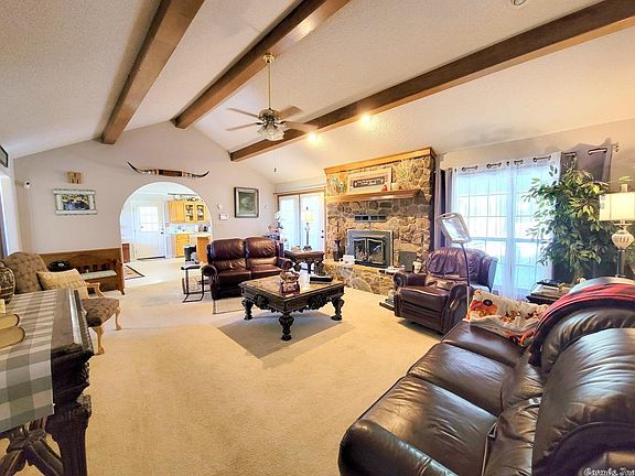 Beautiful home with 23.13 acres close to town. Living has cathedral ceilings and a rock fireplace that can be wood burning. The kitchen offers lots of oak cabinets and large island. 3 bedrooms, 2 baths with the master bedroom having a tray ceiling and French doors out to the patio. Master bath has a jacuzzi tub, step in shower, double sinks, and large his & her walk in closets. There's a 3 car garage, shop, pool and deck with changing room and bathroom.