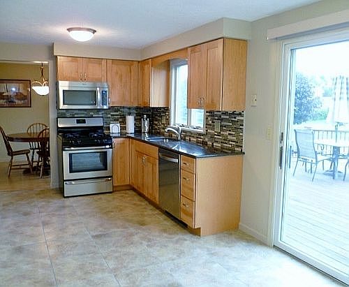This beautiful & very clean 3 bdrm, 1.5 bath colonial on spacious lot is "like-new"! Kitchen includes new cabinetry, decorative backsplash, ss appliances & sliders to deck; Large living room; Dining room with laminate floor; Master bdrm has walk-in closet & access to remodeled full bath; New light fixtures; C/A; Garage with bump out; Newer roof! (Source: RES 150)