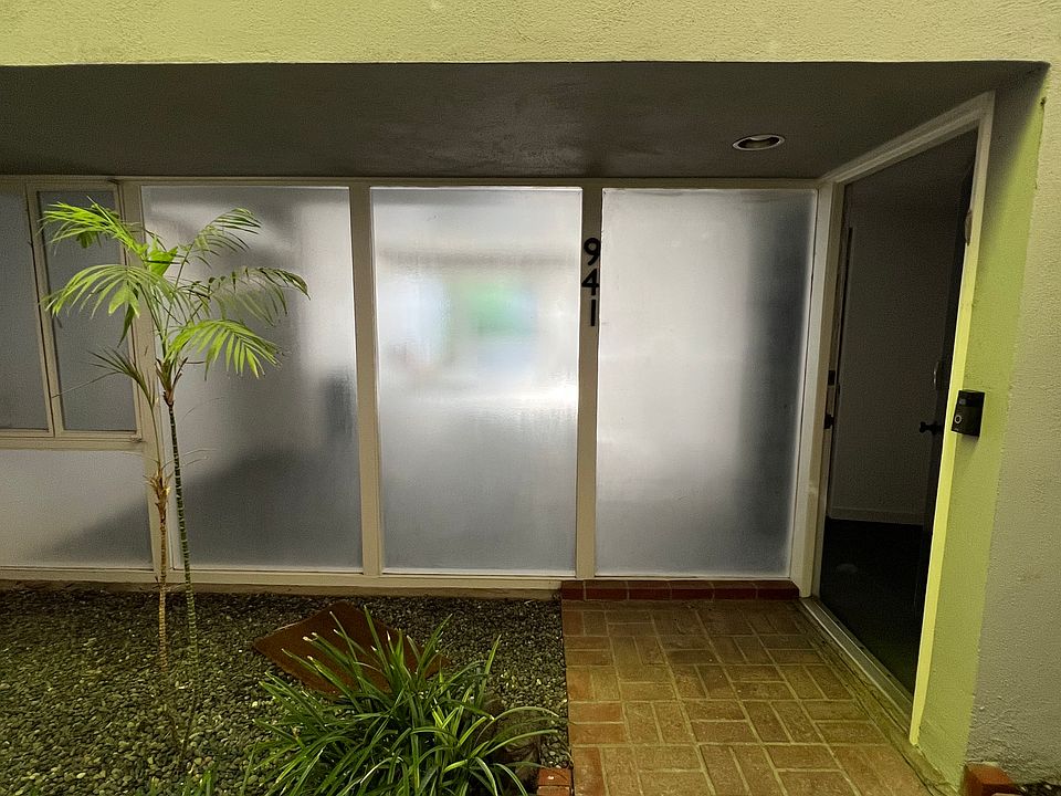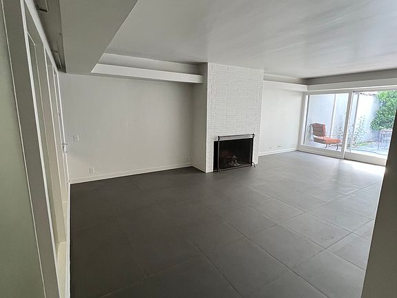 Completely remodeled modernist apartment, steps from UCLA and across from the W Hotel. Very bright, secure front unit. Large sliders across the entire front of the unit open onto a private gated patio, and allow for perfect indoor-outdoor living. Ample kitchen with all new surfaces and stainless-steel appliances, dining area, large living room with working fireplace, 2 bedrooms and1 1/2 bathrooms, great closets, washer/dryer, and A/C. Two tandem garage/driveway parking spaces. Pets allowed with additional deposit.