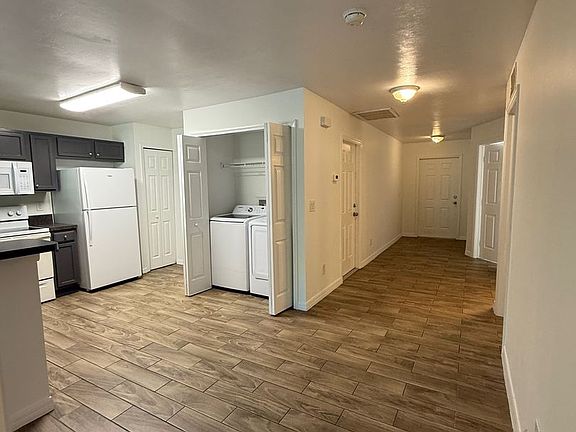 A washer and dryer are available for tenant use, and small pets are welcome with prior approval and applicable fees.