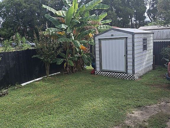 Ceiling fans throughout with a large eat in kitchen. Oversized granite topped middle island and a beautiful glass range with hood. This home boosts of privacy but the amenities of living close to shopping and just a short drive to the world equestrian center! Completely fenced with privacy fence a nice oversized lot at .26 acres. Flower beds line the fence and has landscape throughout. The home has abundance of growing room with 4 large bedrooms and a brand new deck made of true tek to last the test of time and weather. Community water and septic just pumped and inspected 3 years ago in great condition. Has a 8x12 storage building also brand new made of metal. 2 car carport with concrete base. On a paved road and at the end of a cul-de-sac for very low traffic. Security cameras throughout yard for added piece of mind or to just keep an eye on the children while they play. Located on HWY 441 gives access to Gainesville, Ocala and Belleview in just minutes. Don't miss this move in ready homestead!