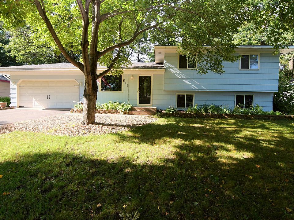 WOW! Updated 4 bedroom (3 on same level) 4 level split in mature wooded neighborhood. 1 3/4 baths, hardwood floors, cherry hardwood cabinets, heated tile floor in kitchen, partially fenced back yard, patio, insulated double attached garage. Walking distance to Blaine baseball complex and close by parks/walking trails. Nice, well kept home. Unfinished 418 sq. footage for lower level game room/storage area not included in sq ft numbers. Two outdoor storage sheds.