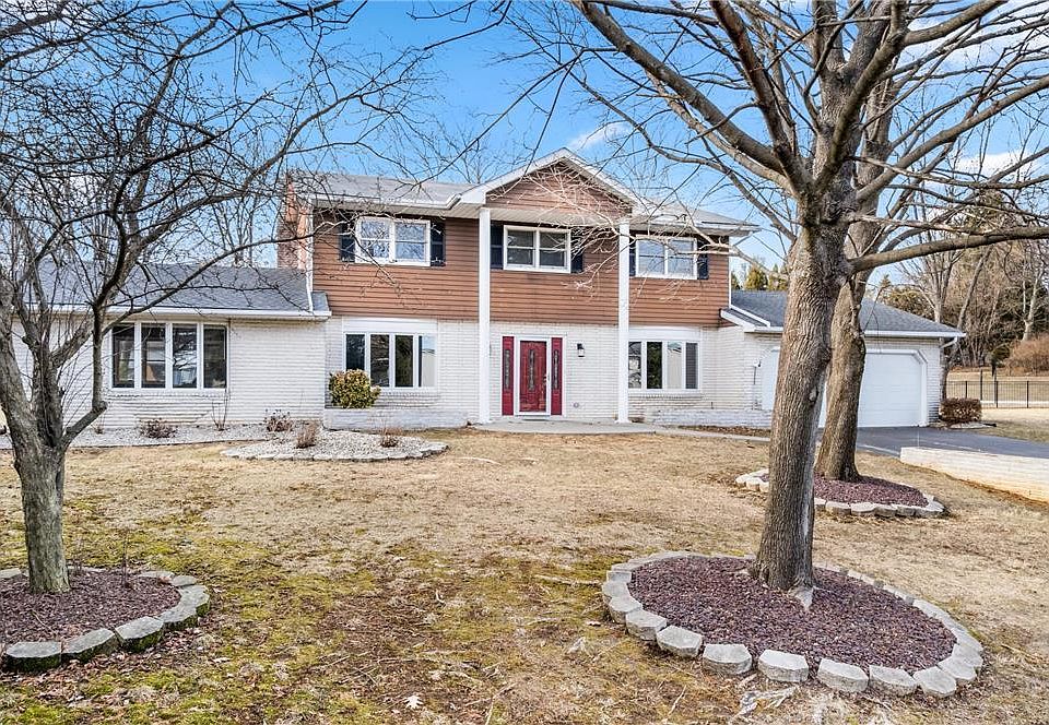 OPEN HOUSE CANCELLED This large well-maintained colonial home with 4 bedrooms, a potential 5th bedroom, & 2 ½ baths has many possibilities to reimagine the living space layout. As it is there is a large eat-in kitchen with stainless steel appliances including a wine fridge, new quartz countertops, & new laminate tile floor, a cozy family room with a brick feature wall & wood burning fireplace & wall sconces, and a large bright and cheery second family room, sunroom or entertainment space. Additionally, there is a spacious dining room with sconces, living room, ½ bath, and laundry / mud room.