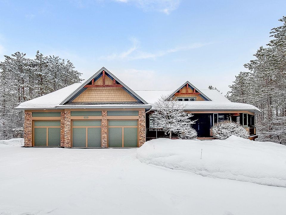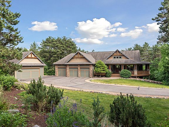 Welcome home! This exquisite craftsman style rambler is a rare find boasting elegance and charm. Nestled in a serene private wooded setting on over 3 acres, this architecturally pleasing design will not disappoint. Boasting custom cherry cabinets, millwork and doors, Brazilian cherry floors, a gorgeous gas stone fireplace, open layout, main floor owner’s suite, a 2nd main floor bedroom and an office/formal dining room. The walk-out lower level features a spacious family room with a wet bar and built-ins, 2 additional bedrooms (one ensuite with it's own 3/4 bathroom), a sound proofed music/theater room and a bonus flex room/finished storage area. Walk out to a beautiful, paved terrace to enjoy your ideal backyard. There is a 3 car attached garage and an additional 2 car garage, both finished and insulated with epoxy flooring. Don’t miss the huge prairie wrap around country porch. This is it!