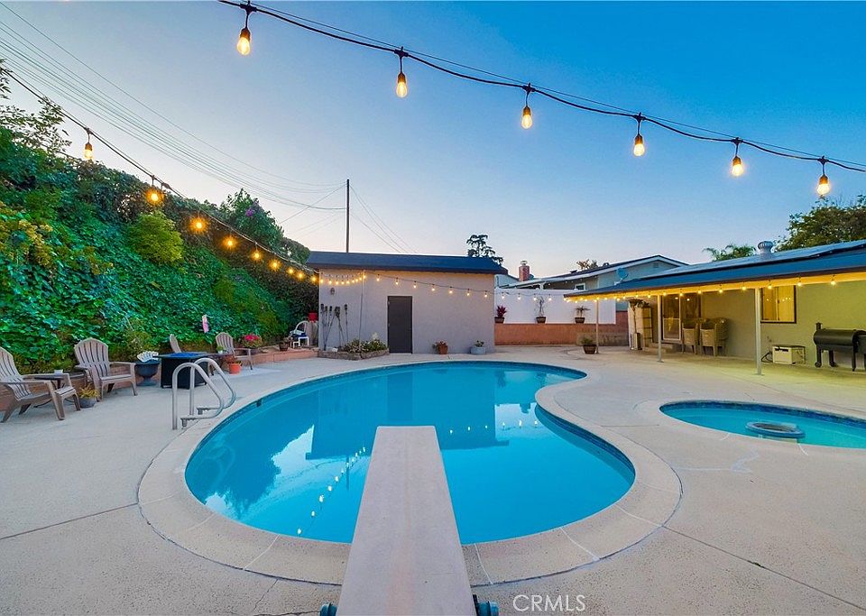 WELCOME TO THIS GORGEOUS POOL HOME! Beautiful and open, this exquisitely maintained home offers 3 Bedrooms, and 3 Bathrooms with detached garage perfect for possible ADU. Original hardwood floors throughout, and original built-in storage bring out the elegance of the home. Upon entrance, you are greeted with a beautiful, tiled fireplace in the open Living Room. Perfect for entertaining as it connects with the Dining Room and Kitchen. Lots of countertop space and flow gives easy access to the Family Room and Laundry Room. A second fireplace in the large Family Room provides a cozy atmosphere for gatherings. Expansive patio and backyard space are perfect for enjoying the pool and any other outdoor entertainment you desire. Primary Bedroom has En-Suite Bathroom and walk-in closet, as well as private access to the backyard and pool. 2 additional Bedrooms provide plenty of options for guests, or Office Space. All 3 Bathrooms have showers. Newer Solar panels provide for the whole house energy use. You MUST SEE this desired neighborhood! Your new home is calling for you!