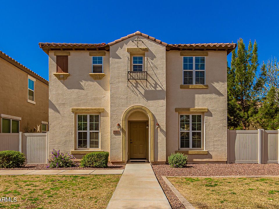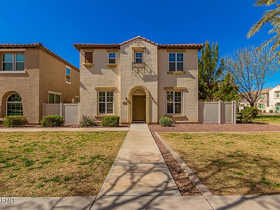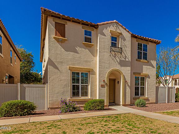 Looking for a place to call home? Become the proud owner of this charming two-story property nestled on a desirable corner lot in Cooley! Welcoming interior features wood-look floors, soothing paint, archways, a cozy foyer, & a perfectly-sized living room. The family room is perfect for gathering. Hold a feast in this formal dining room! Impeccable kitchen includes white cabinets, recessed lighting, SS appliances, quartz counters, pantry, & a breakfast bar. The bright and airy loft is ideal for private hangouts. Have a good night's sleep in this main suite boasting a walk-in closet & an ensuite w/dual sinks. All bedrooms are provided w/walk-in closets. Enjoy sipping your cup of tea on this lovely patio outside. Don't miss it! Take a tour now!