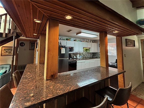 941 Susan Dr is truly one of a kind. Saltillo tile runs throughout the first floor, complementing the vaulted ceiling that fills the living area with natural light. A charming brick accent wall and wood-burning fireplace create a warm and inviting focal point. The dedicated dining area and L-shaped breakfast bar provide plenty of space to gather.