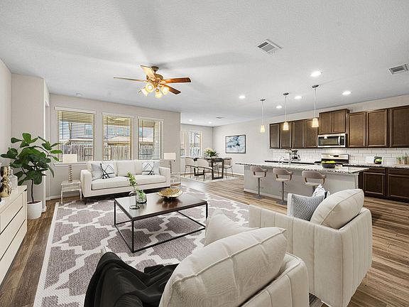 Welcome Home! This beautiful 2018 Ashton Woods Home sits on 60'-foot lot and has been meticulously maintained by original owners. Featuring 4 Large bedrooms, 3 full baths, with a split and open living floor plan. The island Kitchen is spacious and features 42" custom dark wood cabinets with plenty of storage, SS appliances, and sleek granite countertops. The 21x17 family room has a full wall of windows giving the home great natural lighting. The 18x15 master suite has plenty of privacy. Master bath features his/her sinks, walk-in shower and a large walk-in closet. The 14x8 covered backyard patio is perfect for summertime BBQs or just relaxing with Fido in your pool sized back yard. Creekside Ranch is a wonderful community with easy access to all major HWYs, shopping, HEB, and entertainment. Low 2.28 percent tax rate!! Top rated schools!! This energy efficient home has been kept in immaculate condition and will rival any new build!!