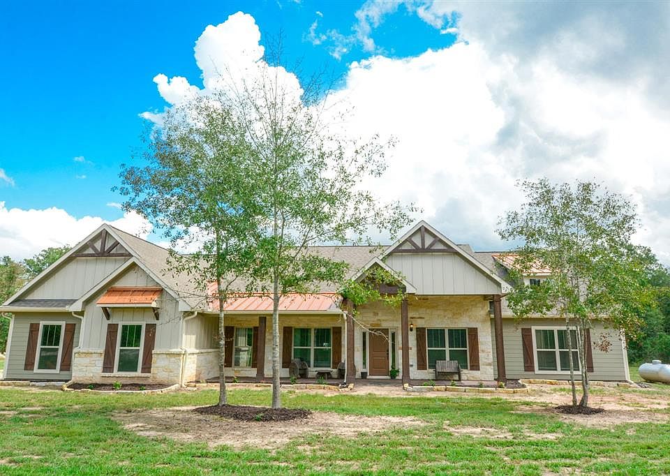 The stars at night, are big & bright *clap clap clap clap* on this acreage home in Texas! Find your own slice of Texas country heaven with over 10 acres of combination cleared & wooded land. Retreat style home features modern fixtures with a rustic ambiance that blend well with the natural surroundings. Located in gated community of Heritage Ranch; property is private enough to unwind from the daily hustle & bustle, yet close enough to allow easy access to 105 & 1484. Lot also includes secondary roofed building (currently used as a workshop), covered front & back \"conversation\" porches, septic, propane, well, and great expansion potential. If you are longing for the potential to view grazing deer, see horses roam, have outside noise obscured by mature tree lines, and be able to gaze at clear views of the night sky...this may be the next place you want to call home.