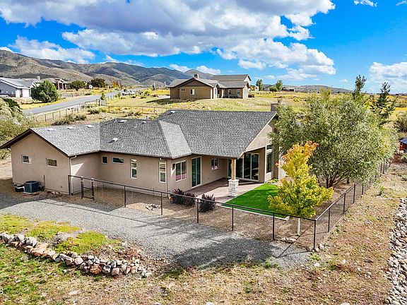 Experience the Northern Arizona lifestyle in this stunning, like-new (5 years old & only 1-owner) custom home in the sought-after Legend Hills neighborhood. Situated on a fully fenced 2+ acre lot with panoramic views, this property features an upgraded 3-bedroom plus office floor plan with designer finishes throughout, including premium quartz & granite countertops, custom lighting, and beautiful cabinetry. The exterior is a true enthusiast's dream, featuring a massive 4-car garage with 220V service, a dedicated 50-amp RV hookup, RV dump, and water, providing unmatched space and utility. Don't miss this dream home on acreage, with views, and custom luxury finishes. Come experience it today!