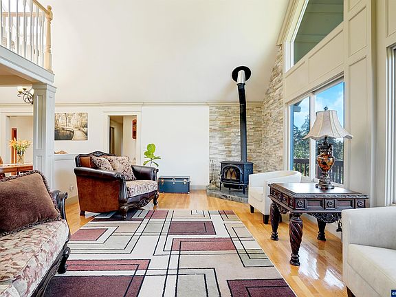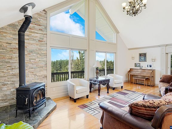 REDUCED $60K!! Private country property on 2.73 ac with Sunset views. This lovely home features 2 kitchens, 4 bedrooms w/ 2 Master suites, 4 full bathrooms. Lower level has separate entrance which allows for ideal dual living options. Woodstove in living room. A Gardner's paradise w/ an array of fruit tree varieties, a small vineyard of table and wine grapes, berries and a productive vegetable garden. Enjoy the Rock Water Feature while relaxing under the gazebo. Shop with workbench/shelving.