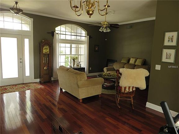 This lovely home is located in the fabulous golf community of Hunter''s Green, which offers a manned security entry, parks, tennis courts, playgrounds, running trails, and a private golf and country club. Located in the Lakeside neighborhood, this well kept home has so many unique features. All the floors in the living areas and bedrooms are Brazilian cherry hardwood, and there is crown molding, plant shelves, and art niches throughout. The open floor plan is wonderful for entertaining, and the sliding glass doors in the master bedroom, living room and family room allow you to open the house up to fresh breezes in spring and fall. Love to cook? This large gourmet kitchen will delight you. The stainless steel appliances are only 6 months old with a transferrable 2 1/2 year warranty. It features a built in desk a large island, and granite counters. The laundry room is off the kitchen and the washer and dryer are also only 6 months old with the same warranty. The master bedroom is an oversized luxurious retreat with a gorgeous coffered ceiling. The master bath has dual sinks, garden tub, separate shower, and a large walk in closet. Tall sliders give direct access to the screened lanai This leads to the secluded patio area that is shielded by an impressive gardenia hedge which creates a restful outdoor area. The backyard continues beyond the hedge where there is a nice sitting area near a fountain. Call for an appointment today.
