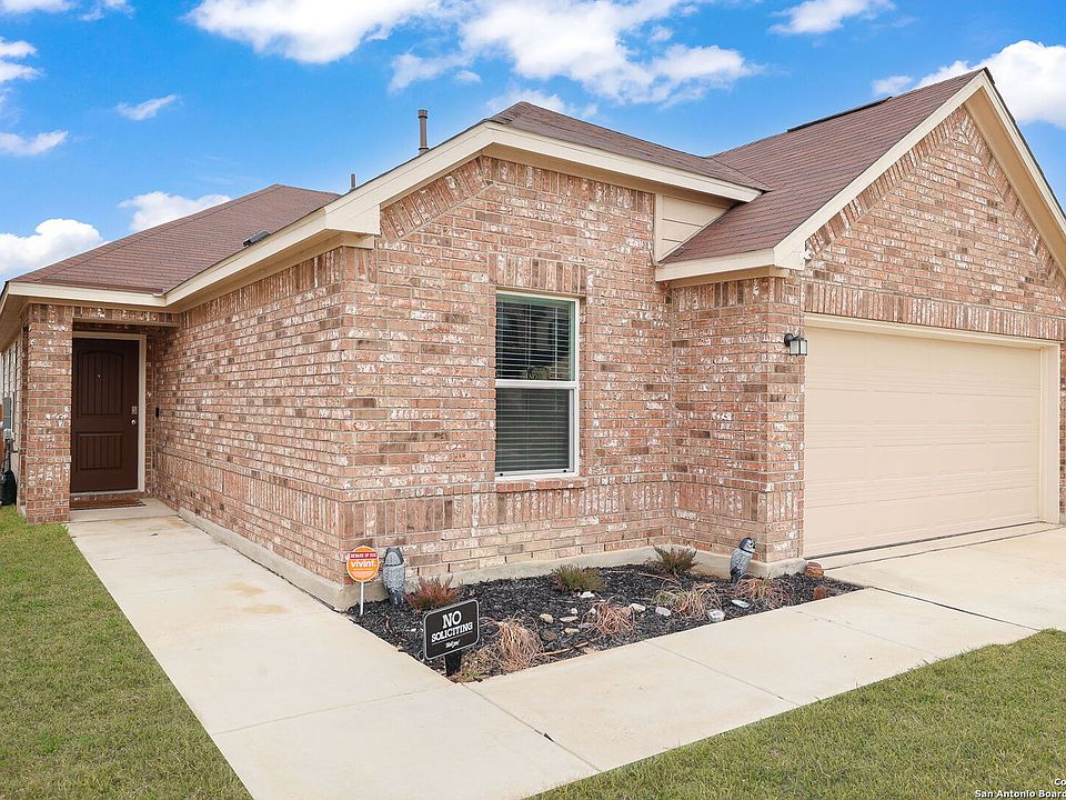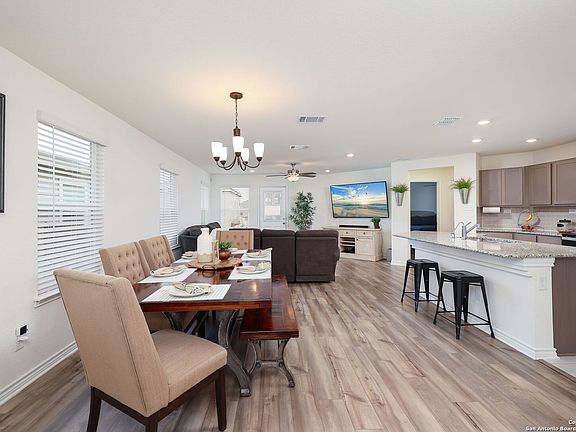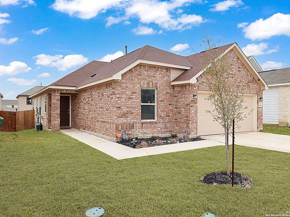 Welcome to this charming one-story home located in the sought-after Knox Ridge community in Converse, TX. This beautiful residence was built in 2023 and offers a comfortable living space of 1,703 square feet. It features four bedrooms, two full bathrooms, and gorgeous Shaw vinyl plank flooring at the entry and Emser Brook tile at the wet areas, with no carpet in sight. The open-concept design of the living space offers plenty of natural light and ample room for relaxation and entertainment, making it perfect for gatherings with family and friends. The kitchen is a chef's dream, complete with modern Whirlpool stainless steel appliances, granite countertops in Arctic Peal with an Emser Catch glossy tile backsplash, Woodmont Dakota cabinets with maple stain, and plenty of cabinet space. Other features of the house include a 42-in. shower with tile surround and dual vanity with Moen faucets, DuPure Impression Plus TM soft water system, wireless security system, and 2-in faux wood blinds. The spacious backyard is perfect for outdoor enjoyment, whether you're hosting summer barbecues or just relaxing in the sunshine. The Knox Ridge community offers a range of amenities, including playgrounds, walking trails, a pool, and a tennis court, providing plenty of opportunities for recreation and relaxation. The community is also conveniently located near Randolph Air Force Base, The Forum at Olympia Parkway Shopping Center, and many shopping and dining options. Don't miss out on the chance to make this fantastic property your own!