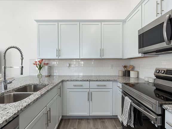 - Exterior features: BBQ/Picnic Area, BILT Rewards, Basketball Court, Biking Trails in HOA, Custom Closet Organizers, Flexible Loft Space, Goose-neck Kitchen Faucet, Granite Counter Tops, Pet Park, Plush Carpeting, Smart Locks, Stainless Steel Kitchen Appliances, TV Lounge, Tennis Court(s), Tiled Kitchen Backsplash, Undermount Kitchen Sink, Volleyball Court, Walking Paths