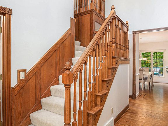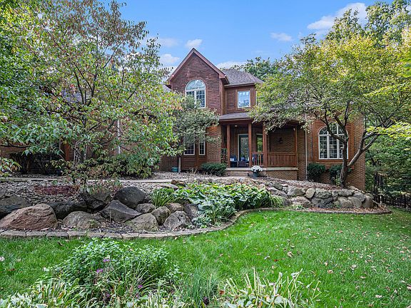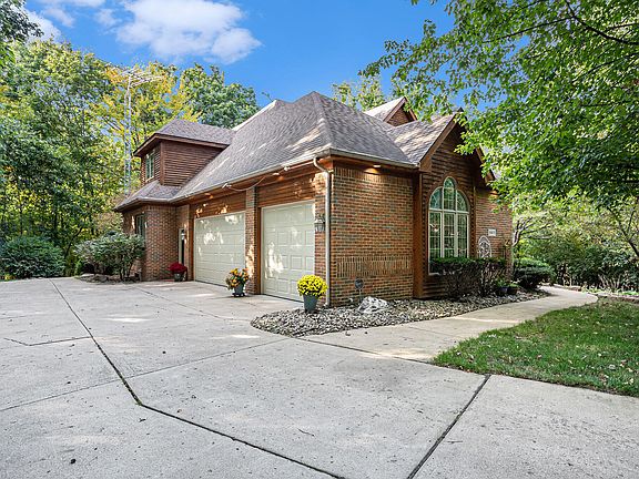 Near the school and tucked in a cul-de-sac, the original builder of this upscale neighborhood built his own executive home. This serene location backs up to the woods and the 15th hole of the Goodrich Country Club. The abundance of breathtaking windows, the four seasons sunroom and the very secluded deck create a perfect atmosphere for relaxing. Each bedroom upstairs has an attached bathroom and an xl closet making it perfect for those with a family bathroom schedule, a mother-in-law or just entertaining out of town guests. The yard is surrounded by woods, creating a wall of privacy during the summer. You won't even know you have neighbors until the leaves fall. The walkout basement has a bar, fireplace, extra bedroom, bathroom and small kitchen to make entertaining a breeze. You can also drive your golf cart from your basement golf cart garage, through the woods, directly to the course. The 75 gal WH, softener, furnaces and all kitchen/laundry appliances are less than 10 years old. Call your favorite agent or Tina Kyger at 269.209.3419 to schedule your showing, today!