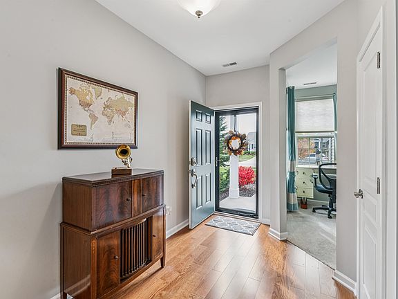 Perfectly located in the exclusive Townes at Grand Reserve, this beautifully maintained home offers a perfect blend of comfort, style, and convenience — ready for immediate move-in! Designed with thoughtful upgrades and a well-planned layout that maximizes space and storage, it features a freshly painted interior, premium whole-house water filtration and conditioning system, reverse osmosis at the kitchen sink, and an expanded two-car garage with an additional alcove — ideal for a workshop, craft area, or extra storage. Inside, you’ll find a spacious open floor plan with hardwood floors and a gourmet kitchen boasting granite countertops, a large island, and a stainless steel sink. The abundance of cabinets and clever storage options throughout make everyday living effortlessly organized. A flexible room provides the perfect space for a home office or cozy reading nook. Both bedrooms include custom closets, while the stunning window shades add a touch of elegance and privacy throughout. Living in Grand Reserve means enjoying low-maintenance, luxury living year-round with access to resort-style amenities. The 15,500 sq. ft. Grandview Lodge serves as the community’s social hub, offering indoor and outdoor pools, a hot tub, fitness center, tennis and pickleball courts, bocce ball, disc golf, horseshoes, walking trails, and countless clubs and activities organized by a full-time lifestyle director. Whether you’re looking to unwind by the pool, stay active on the courts, or connect with neighbors at community events, Grand Reserve offers the perfect balance of relaxation and recreation in a beautifully maintained, welcoming environment.