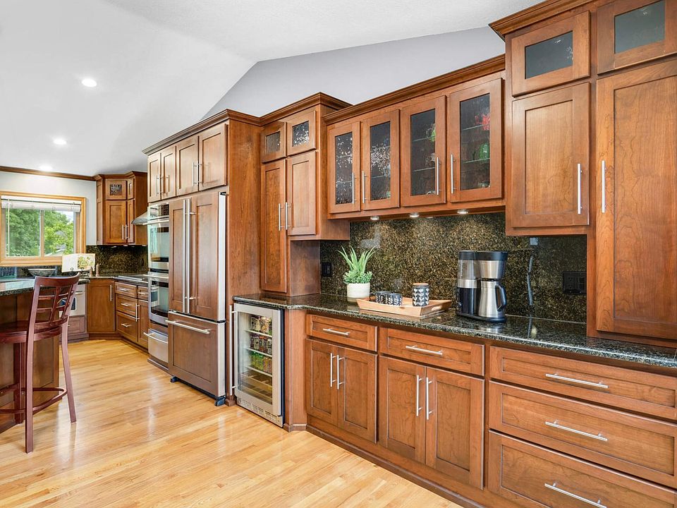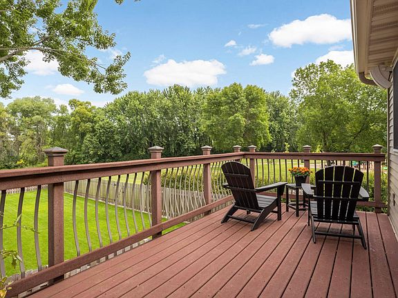 Step in this 5 BR/ 3 BA Champlin home and immediately fall in love with the updated kitchen, spacious layout, vaulted ceilings, and beautiful hardwood floors throughout. Start your next chapter in this immaculately maintained Champlin home and enjoy life surrounded by the beauty of the Elm Creek Park Reserve. One of the best features of this home is the tranquil water feature in the back yard with a fire pit. Beyond the home there is 4,900 acres of protected nature offers peaceful scenery and wildlife right in your backyard. Enjoy easy entertainment with the open concept kitchen that flows into the dining room. The kitchen is the heart of the home, boasting abundant cabinet space and premium stainless steel appliances including a new induction range, double ovens and extra beverage fridge. Step out on the deck to take in the serenity of Elm Creek Park Reserve right in your backyard. Rest and relax in the charming living room and cozy up to the floor to ceiling stone fireplace. Delight in the details of this home as natural light pours in through the sky lights overhead. 3 bedrooms are conveniently located on the same level, including the Primary Suite! The Primary Suite offers an upgraded attached bathroom and walk-in closet. An additional full bathroom is located near the other 2 bedrooms. Each bedroom is equipped with ceiling fans and spacious closets. Retreat down to the finished Lower Level and challenge friends to a game of pool or gather in the Family Room for movie night! Two additional bedrooms and a 3/4 bathroom are located in the Lower Level. Utilize the extra space as an office, exercise or hobby room. The Lower Level walks out to a huge stamped concrete patio that is perfect for grilling or lounging. You cannot put a value on living in peace on a quiet street with with the advantage of all that Elm Creek Park Reserve has to offer with 20+ miles of paved walking and biking trails, beautiful lake views, some of Minnesota’s best singletrack mountain biking, swimming, disc golf, skiing, camping, parks, archery and more. Additionally, you are walking distance from restaurants, grocery stores, and a brewery. Refer to the brochure in the listing documents or ask your agent for a complete list of home updates.