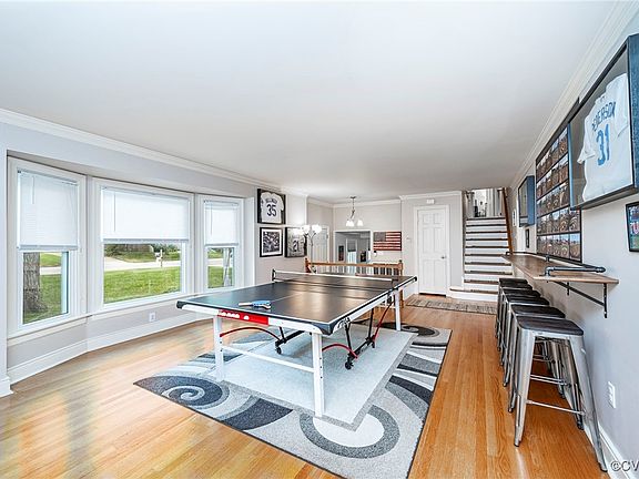 - Beamed Ceilings, Bookcases, Built-in Features, Ceiling Fan(s), Dining Area, Eat-in Kitchen, Fireplace, Granite Counters, Track Lighting