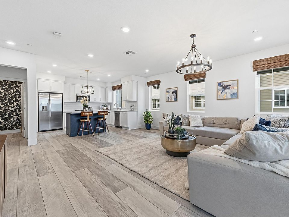 Welcome to this beautifully maintained northeast-facing corner unit in the desirable Bridgeway community of Newark. Bathed in natural light throughout the day, this modern 1,424 sq ft home features an open layout that connects the bright living area with a sleek, well-appointed kitchen complete with designer cabinet handles, a statement island, stainless-steel appliances, upgraded counters, and a full backsplash. Luxury vinyl plank and plush carpet provide comfort throughout. Enjoy two covered patios ideal for morning coffee, evening tea, or relaxing with a book. The primary bedroom stands out with a real-wood accent wall and an elegant chandelier. Additional highlights include leased solar and strong whole-home internet coverage. Bridgeway residents enjoy a host of amenities like a clubhouse, swimming pool, dog park, and playground. Outdoor enthusiasts will love the nearby Don Edwards Wildlife Refuge with trails and open space. Conveniently located near great schools, Meta, Tesla, major tech employers, the Dumbarton Bridge, and I-880, this bright and thoughtfully designed home is a wonderful opportunity.