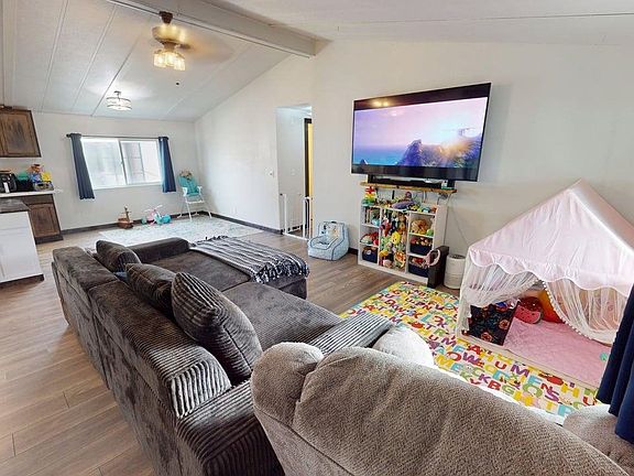 Beautifully updated double-wide manufactured home offering spacious open-concept living and a desirable split floor plan. Luxury plank vinyl flooring runs through most of the home, complementing the bright, modern kitchen with newer cabinetry, a farm-style sink, and a generous island perfect for entertaining or meal prep. The owners suite features a walk-in closet, private slider to the deck with a peek of the ocean, and a stunning ensuite bathroom complete with granite counters, tile floors, a tiled shower, and a relaxing jetted soaking tub. Enjoy the outdoors year-round on the large covered deck with ocean views and take advantage of the nice-sized tool shed for storage. Located in an all-ages park with a monthly space rent of $490, which includes water, sewer, and trash service. Move-in ready and waiting for you to call it home!