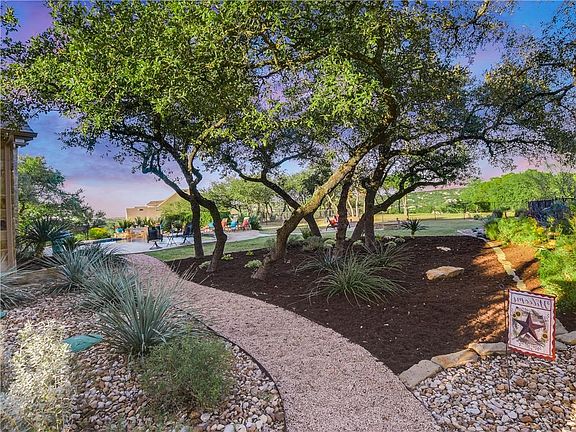 A Gem in the Vistancia Subdivision + Lake Travis ISD! LOW TAXES & HOA, Acre Lot with Gorgeous Back Yard w/Pool,Established Trees, Fire Pit & more! Pride of Ownership Inside & Out!Upgrades in Both!Great attention to detail/thought went into this beautiful backyard landscaping remodel by owners. EXTERIOR: Hardscape,stone decking around pool including walkway to the fire pit area & installation of new fire pit & surrounding benches. Pebble walkway from gate to pool area, stone planters along back foundation, flower beds along fence,replaced plants/flowers/greenery in backyard/installed sod in background/upgraded irrigation system in back upon completion of backyard remodel project (added more sprinklers/drips), wood structure added around pool pump including greenery (trumpet vines). Added a removable Guardian Fence off back porch (ask Realtor for details). INTERIOR: Updated lighting fixture in dining room,Upgraded Kitchen Sink Faucet,Replaced Microwave, Dishwasher,Custom Designed Soft Window treatments.Other features include tray ceilings in several rooms, beautiful cabinetry and backsplash in kitchen, under cabinet lighting, recessed lights, walk in pantry, and grand kitchen center island perfect as a breakfast bar & entertaining. Cooktop is gas also. Office is to the left of the front door,ideally located away from main living and bedrooms.Master Bedroom is ideally located away from other bedrooms for privacy w/huge walk in closet,his & her vanities,garden tub & large walk in shower. This Avalon II beauty has it all: - Low tax rate & HOA, 3 Car Garage w/extended driveway for guests/kids to play,4 bedrooms/3 full baths/Office/Flex/Game room /Acre lot/Dream Back yard with Pool and views/Great functional floorplan with natural light. Truly a special home, property & location (just a few miles away from shopping etc).