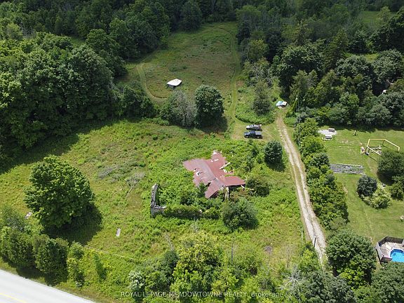 This rare scenic 83-acre property-located just south of Highway 401 and the Village of Moffat, and north of Campbellville on a paved road. A beautiful blend of open fields and mature forest creates an idyllic setting for a private estate, recreational retreat, or future homestead farm. At the heart of the property stands an 1890 Ashlar stone farmhouse with a metal roof. While not heritage-designated, 1.5-storey farmhouse that has withstood the test of time, proudly retaining the timeless beauty of its original exterior. Renovated in the 1950s, it presents an exceptional opportunity to restore or incorporate its impressive stone facade into a truly magnificent custom estate home. Also on the property are the distinctive ruins of a grand 1890s stone bank barn. Though showing its age, the barn's enduring footprint offers striking potential as a focal point for weddings, family gatherings, or film shoots-making it a unique feature full of rustic character. Zoned A2, the property includes a pond in the north area, regulated by Halton Conservation and a portion of Kilbride Creek running through the northwest corner bordering the Pioneer Creek Trail. The land is not within the NEC per their mapping, allowing more flexibility for building. The property may be subject to HST as it is not currently being farmed. Buyers are strongly advised to consult with their advisors to confirm any tax implications. Convenient access to Hwy 6 and 401, Milton, and Campbellville makes this a superb location for commuters & those seeking a grand country lifestyle close to Town. This is a once-in-a-lifetime opportunity to own legacy farmland rich in history, natural beauty, and endless future potential.