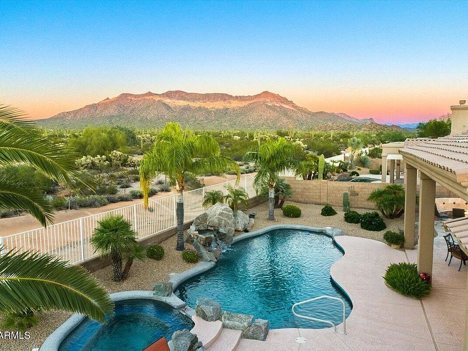 This immaculate home checks ALL the boxes! 3 car garage, unbelievable views, premier lot where nothing can be built behind it, no stairs, vaulted ceilings, single story, split floor plan, & a resort style backyard with heated pool and spa! No filter needed sunsets will make all of your friends jealous! Huge backyard features extended patio, built in BBQ & fire pit. This floor plan is unique to the community, has a ton of natural light, & is perfect for entertaining. Close to the 202 for easy access to the City. Moments from all of the outdoor activities special to AZ with neighborhood access to Usery Park. Come see it today and you will fall in love!
