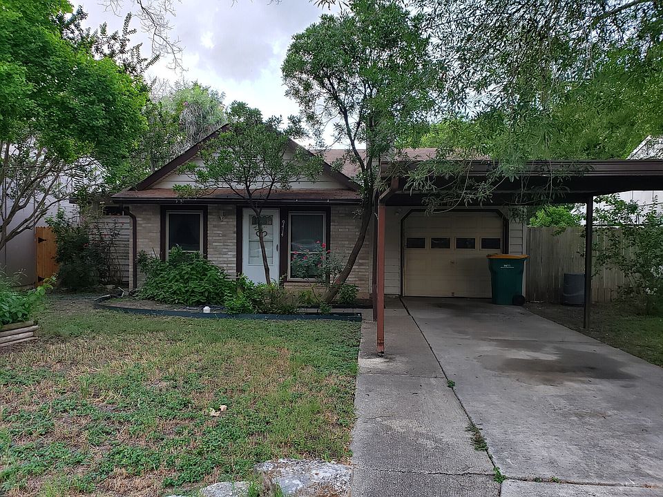 This single family home includes 3 bedrooms, 1 bathroom, a 1 car garage with carport, and a two room addition for extra space. It is located off Gibbs Sprawl Rd (FM 1976) near Topperwein Rd in Converse, Texas.