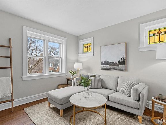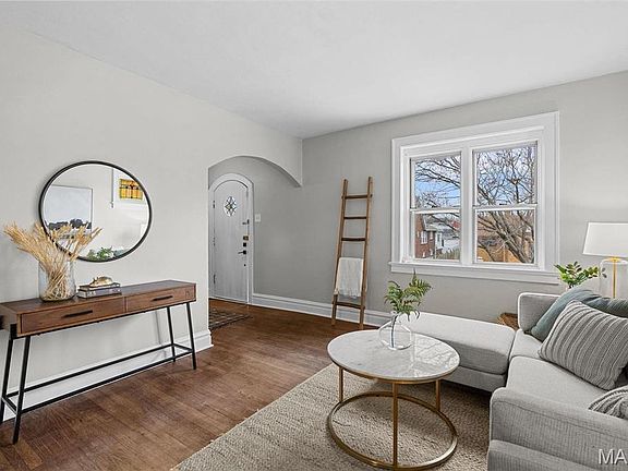 Welcome to your dream home! This beautifully renovated ranch is move-in ready & perfectly located near the popular 9-Mile Garden & Affton Schools. With 1,148 sq ft of living space, this home features 3 spacious bedrooms & updated full bath. From the moment you step inside, you'll notice the perfect mix of updates & charm throughout from the beaming hardwood floors & freshly painted walls throughout to the stained glass windows & arched walkways. The kitchen is a standout, boasting new appliances, quartz countertops & backsplash, complemented by tastefully restored cabinets for a retro flair. The primary bedroom is a private oasis w/ new LVP flooring, trim, & stylish Farm Door to a walk in closet. The unfinished LL awaits your finishing touches while offering plenty of storage space & laundry hookup. Entertain family & friends on the patio overlooking the level fenced in back yard (playset to stay) + off street parking offers added convenience. Welcome home!