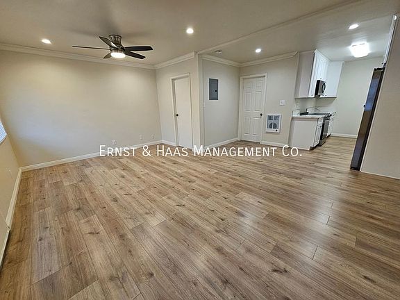 Charming 1-bedroom apartment in a highly desirable Downey location. Newly remodeled with a designer paint scheme, new vinyl plank flooring, new blinds, new kitchen cabinets, new countertop, new lights, new ceiling fans, new refrigerator, new stove, and new over-the-range microwave. The property offers the convenience of on-site laundry facilities and includes a dedicated parking space. Additionally, water and gardening services are provided, enhancing the overall appeal of this lovely apartment. It is ideal for those seeking a comfortable and well-maintained living space in a prime area. Don't miss out on this fantastic opportunity! This property is equipped with a Codebox and can be viewed via the ShowMojo scheduled self-guided tour. To schedule a showing from the Ernst and Haas Management website, click on "Schedule a Showing", then select a date and time from the ShowMojo available time slots. To qualify: Credit score must be no less than 620. Monthly gross income to qualify must be 2.5 times the rent We do not accept past evictions, judgments, or collections from a management company or landlord Renter's Insurance is required. Proof of coverage must be provided upon the signing of your lease. Tenant that has an animal shall obtain a policy that provides coverage for the animal. Guarantors must have a FICO credit score of 725 or higher. Scores below 725 will not qualify. Please be aware of rental scams: We caution all applicants to be diligent in researching the legitimacy of any potential rental listing. All deposits, rents, and rental agreementsare only executed at Ernst & Haas Management Co; located at 4120 Atlantic Ave; Long Beach, CA 90807. If you are asked to fill out a third-party application or asked to pay cash or money order via these Apps (E.g. Western Union, Money-Gram or Prepaid Visa card) stop! Theseare signs of rental listing scams used to defraud applicants. Ernst and Haas Management Co. DRE License #01251870 All information is deemed accurate but not guaranteed. Appliances are provided as a courtesy and are not mandatory to the lease. Terms are subject to change without notice. Gardening Included Over The Range Microwave Six Month Lease Wall Heater
