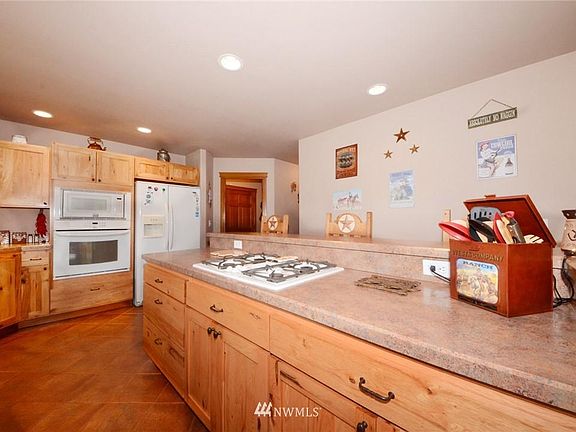 Lucky D Ranch- 10 acre equestrian with all the bells & whistles. Paved lane delivers you to this meticulous home with hardwood floors, great kitchen space & private owners suite, while horse facilities won't fail to impress! Well groomed outdoor arena, round pen, barn, 3 run in stalls, washing station & a yearly hay crop. Extras include ADA width doors, extended covered patio with lighting and gas line plumbed for evening barbecues, triple garage & rv dump station.