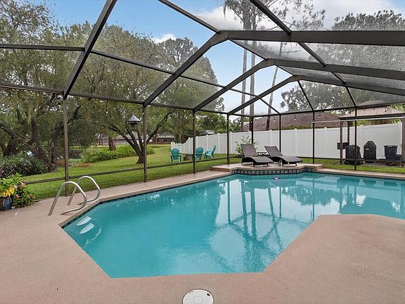Welcome to this beautifully updated 3-bedroom, 2-bathroom home with a 2-car garage and a stunning heated and screened pool, perfectly situated in the highly desirable Pebble Creek community of New Tampa. Step inside to find a spacious living room with a cozy fireplace, ideal for family gatherings or quiet evenings at home. The kitchen has been tastefully updated with brand-new marble countertops, a stylish tile backsplash, modern appliances, and a breakfast bar that overlooks the living room—perfect for casual dining and entertaining. The primary bedroom offers a private ensuite, walk-in closet, and sliders leading directly to the backyard and pool area, creating the perfect indoor-outdoor retreat. The guest bathroom features new shower tile, adding a fresh and modern touch. Enjoy Florida living at its finest in your private backyard retreat, complete with a covered outdoor seating area, firepit, and sparkling pool overlooking the serene pond. Whether hosting guests or unwinding after a long day, this outdoor oasis is perfect year-round. Peace of mind comes easy with a new roof installed in 2024 and a 1year home warranty is being provided by the seller. Located just minutes from I-75, Pebble Creek offers convenience to shopping, dining, and entertainment, and is only 22 miles from Downtown Tampa. With its ideal location and thoughtful updates, this home blends comfort, style, and convenience. Don’t miss the opportunity to make this New Tampa gem your own!