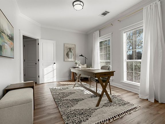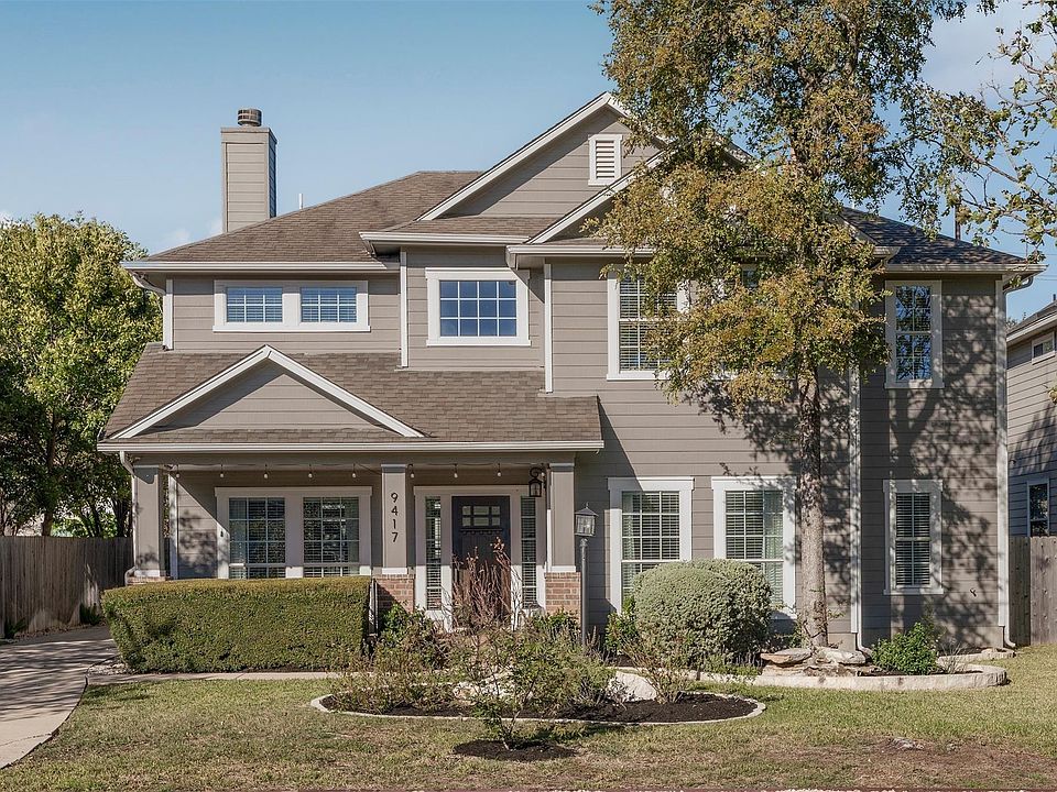 It’s not often a home opens directly onto one of Circle C’s best backdrops, but this one greets you with Vintage Place charm and more than 500 acres of Circle C Park right across Slaughter Ln. The front porch sets the tone before you even step inside, stretching wide enough for chairs, plants, and slow mornings. Past the door, the home opens with purpose: a formal dining room on the left that’s ready for holiday dinners or easy weeknight meals, and a dedicated office on the right that gives you a true workspace. Keep moving and the living room pulls you in with a full wall of windows, a fireplace that anchors the space, and an easy connection to the kitchen and breakfast area. The 2022 kitchen renovation brought in white cabinetry with gold hardware, quartz counters, a herringbone backsplash, stainless appliances, and thoughtful touches like under-cabinet lighting. A guest bedroom and full bath on the main floor offer flexibility for visitors or multi-generational living. Upstairs, three more bedrooms include a generous primary suite tucked at the back of the home. The ensuite brings a calm, spa-like feel with a dual vanity, soaking tub, separate shower, and a walk-in closet lined with custom cedar shelving that feels more like a boutique than storage. The backyard is where this property really separates itself. Nearly half an acre, shaded by mature trees, with a detached garage, with an EV charger, tucked back for privacy. The covered patio sits just off the back of the home, offering a relaxed place to enjoy the view. And then there’s everything around you. Highly rated Kiker Elementary and Bowie High School. Escarpment Village half a mile away for groceries, coffee, and dinner. The Veloway and the Lady Bird Johnson Wildflower Center just minutes down the road. Quick access to Mopac and 290. And all of it anchored inside one of Circle C’s most sought-after pockets!