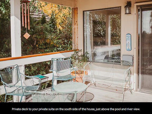 Private & comfortable hideaway w/ seasonal views, tennis court, & in-ground 20x40 pool! Settle into a cozy suite w/ kitchenette, Japanese bath & your own private deck. Fun walks to river, Arboretum & Fish Hatchery. 10 min to Vancouver Waterfront and PDX airport, 20 min to downtown PDX, 5 min to PeaceHealth & Vancouver center. Pvt parking & separate entry via outdoor river-rock path. Amenities: natural soap, bath salts, sparkling water, filtered water, coffee & tea. No animals/smoking allowed, due to owner's asthma and allergies. In-law main-level suite with own kitchenette including induction cooktop, microwave, and refrigerator, bathroom equipped with both shower and Japanese soaking tub, and private deck / entry. Central A/C with active Honeywell HEPA filter, and if needed, an auxiliary window A/C and floor heater. Southern exposure with seasonal river and city views. Summer-use in-ground 20x40 swimming pool and tennis / pickleball court. Walking paths through our private garden and via our private gate, a short walk to the Columbia river. We are just minutes by car or Uber from Vancouver Peacehealth, spectacular new Vancouver Waterfront, Kaiser Cascade Park clinic, NE Alberta Arts and downtown PDX hotspots. Total square footage is about 440 sq ft including the 120 sq ft covered deck. Extended stays are welcome on a space-available basis; please contact us with your details. Please note that we occasionally host private weekend poolside parties for our close friends and family, usually during the summer months, typically between the hours of 2:00PM and 8:00 PM. Owner pays for all utilities including water, power, garbage, and high-speed internet. Assigned off-street parking for one vehicle is included. Unit is fully furnished. Due to owner allergies and asthma, animals, on-site smoking, burning incense, or the use of any strong-smelling substances is strictly prohibited. Lease terms are month-to-month, but we also welcome renters who wish to stay for an extended period. Rents are generally reviewed annually and typically adjusted for the amount of inflation.
